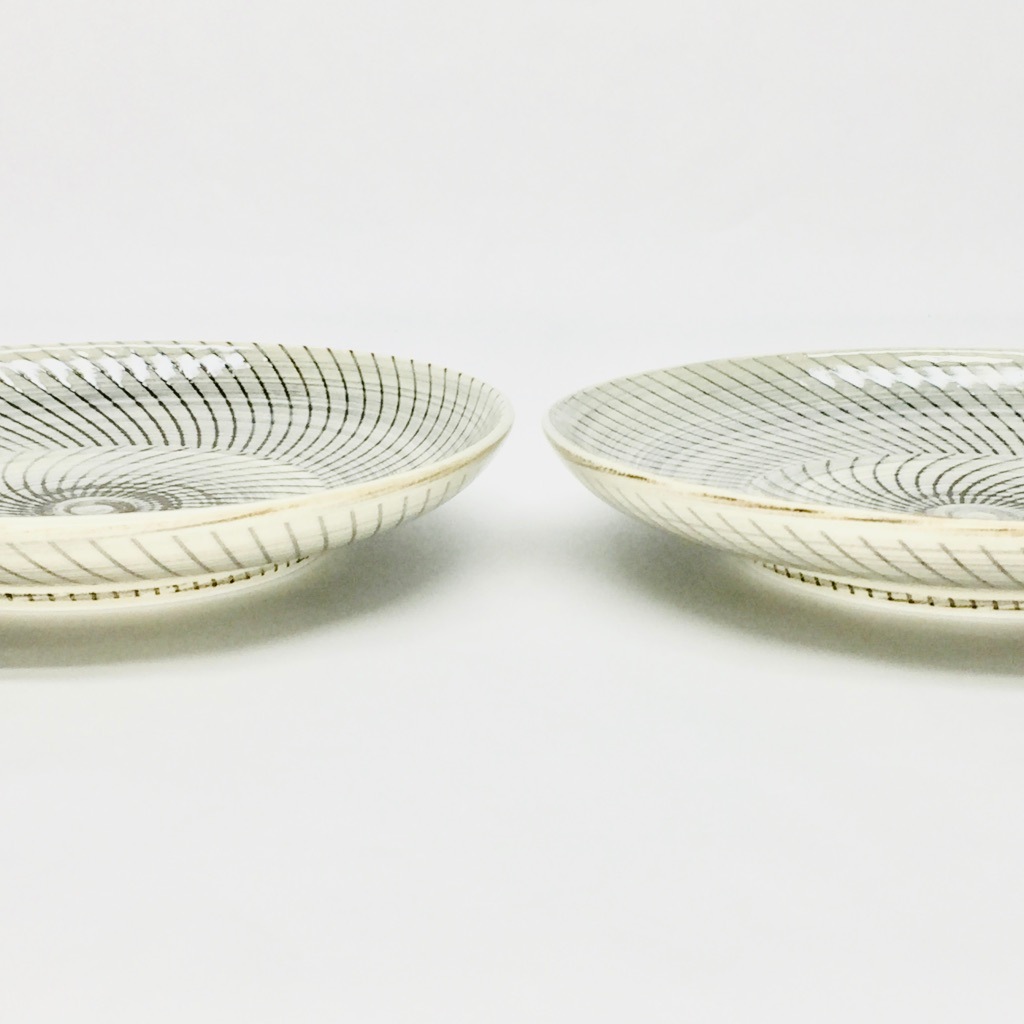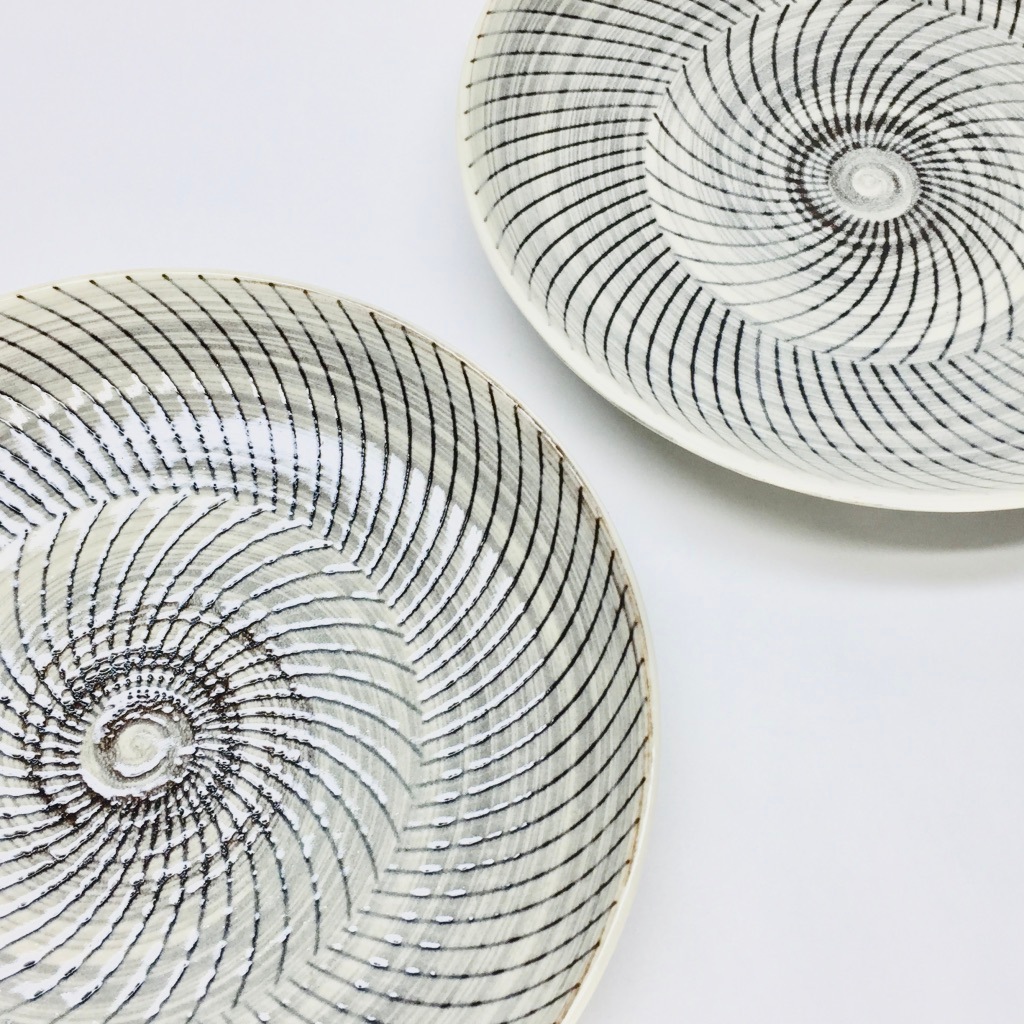 「ねじり」の彫りが入った直径15.5㎝程のモダンな器、色合い的にどの料理にも合わせられる様、優しい色合いとなっています。用途的には取皿に最適なサイズです。