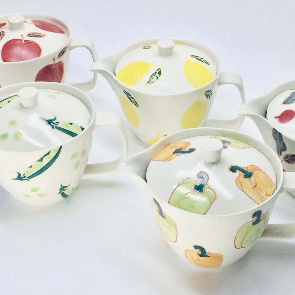 自然な肌合いの中に色鮮やかに描かれた果物や野菜の絵柄、食卓を素敵に演出します。