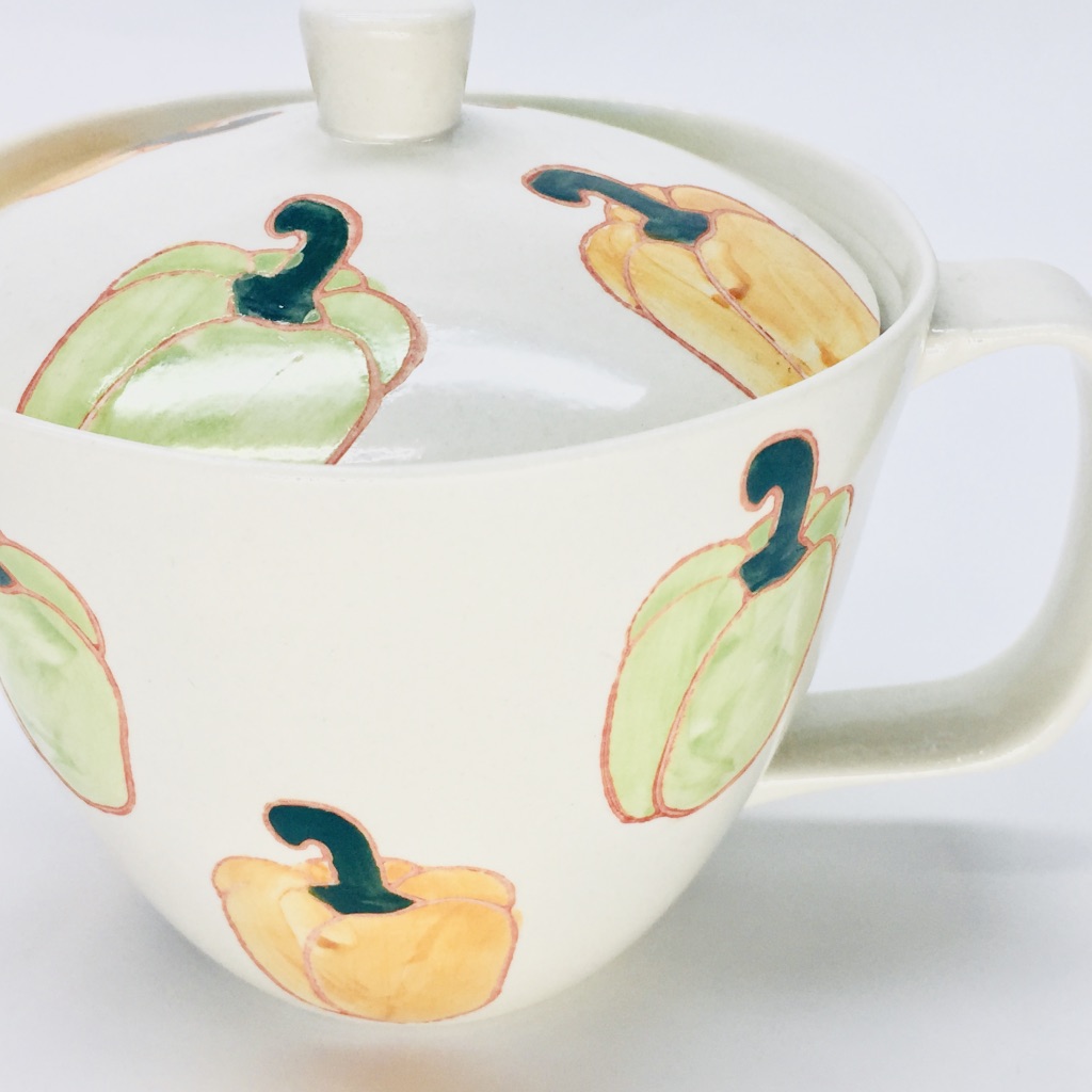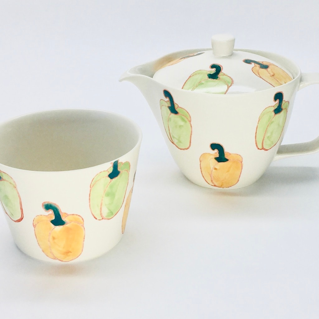 自然な肌合いの中に色鮮やかに描かれた果物や野菜の絵柄、食卓を素敵に演出します。