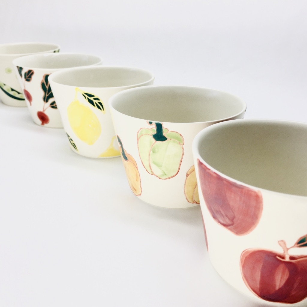 自然な肌合いの中に色鮮やかに描かれた果物や野菜の絵柄、ご家族で絵柄別でお使い頂くなど、食卓を素敵に演出します。