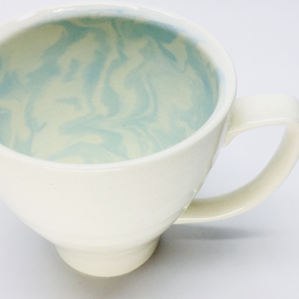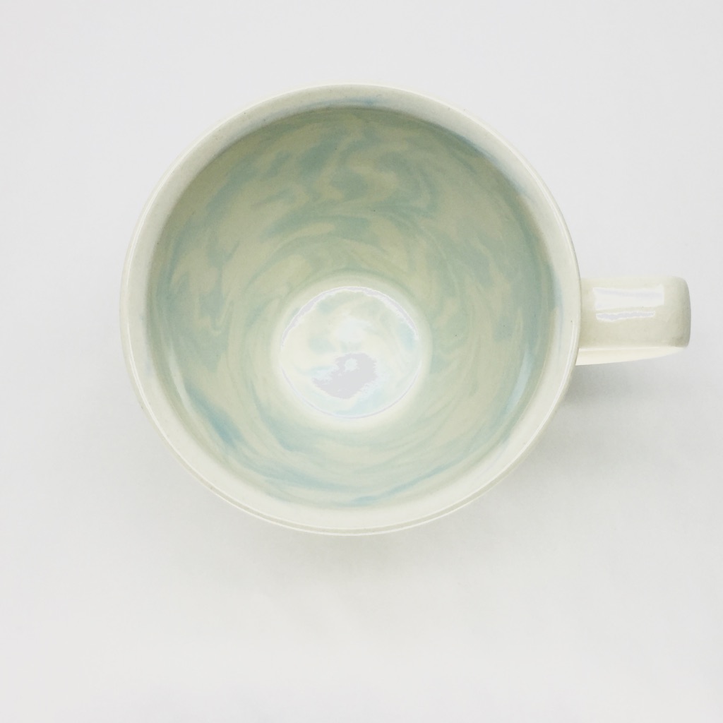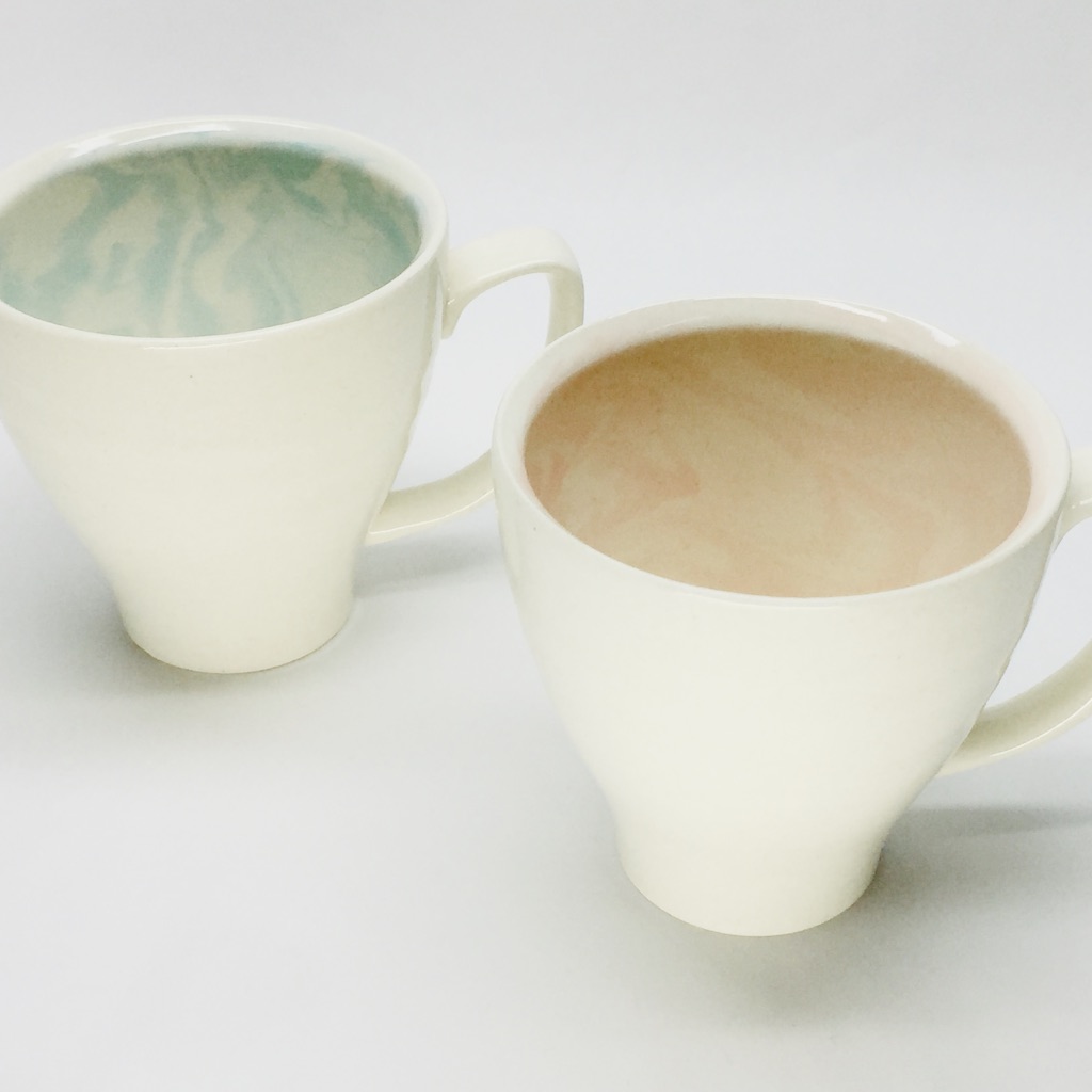 外側が肌色の温かみある色合い、内側がマーブル文様の素敵なマグカップです。シンプルな雰囲気で飽きがこず、日常使いに最適な雰囲気となっています。ちょっとしたギフトでも喜ばれる商品です。