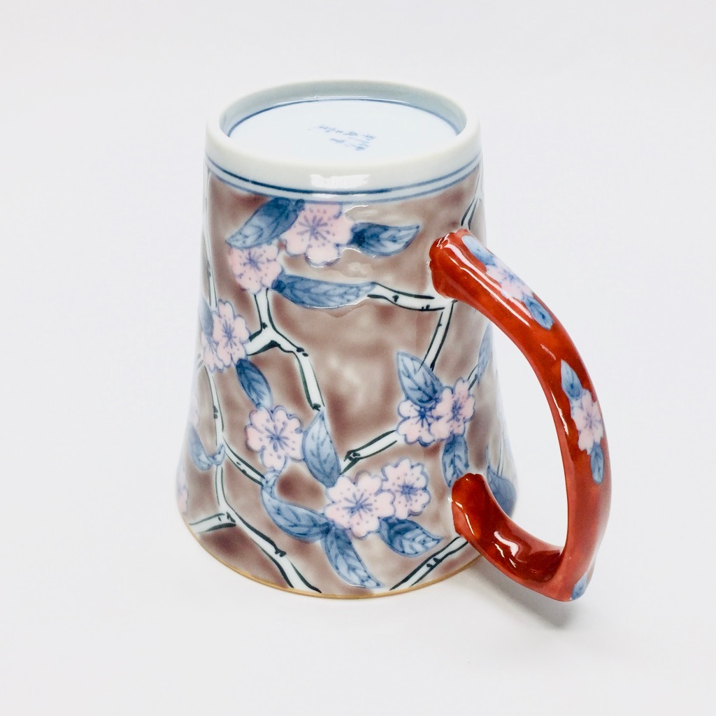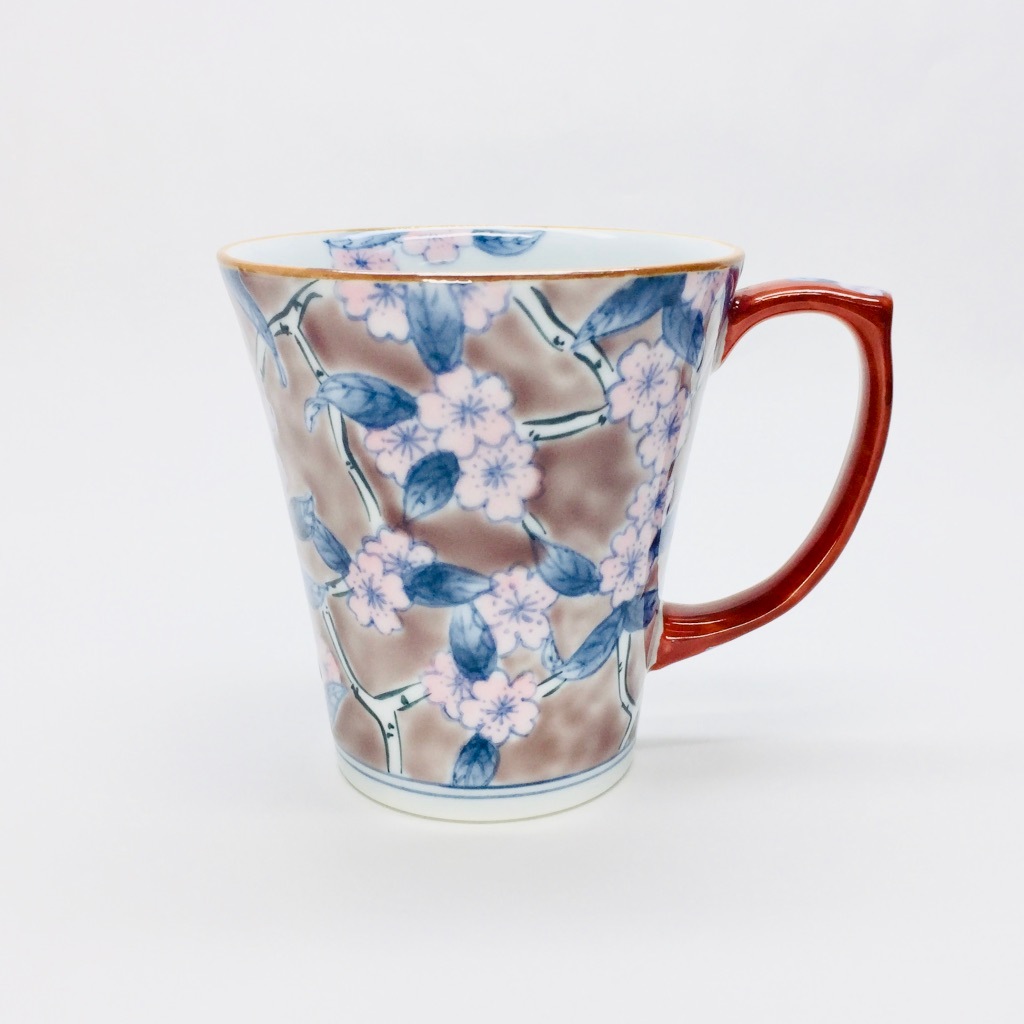 暖かみある紫色の背景が目を引く、桜を絵付けしたマグカップです。日常使いはもちろん、ギフトとしてもお喜び頂けるマグカップとなっております。