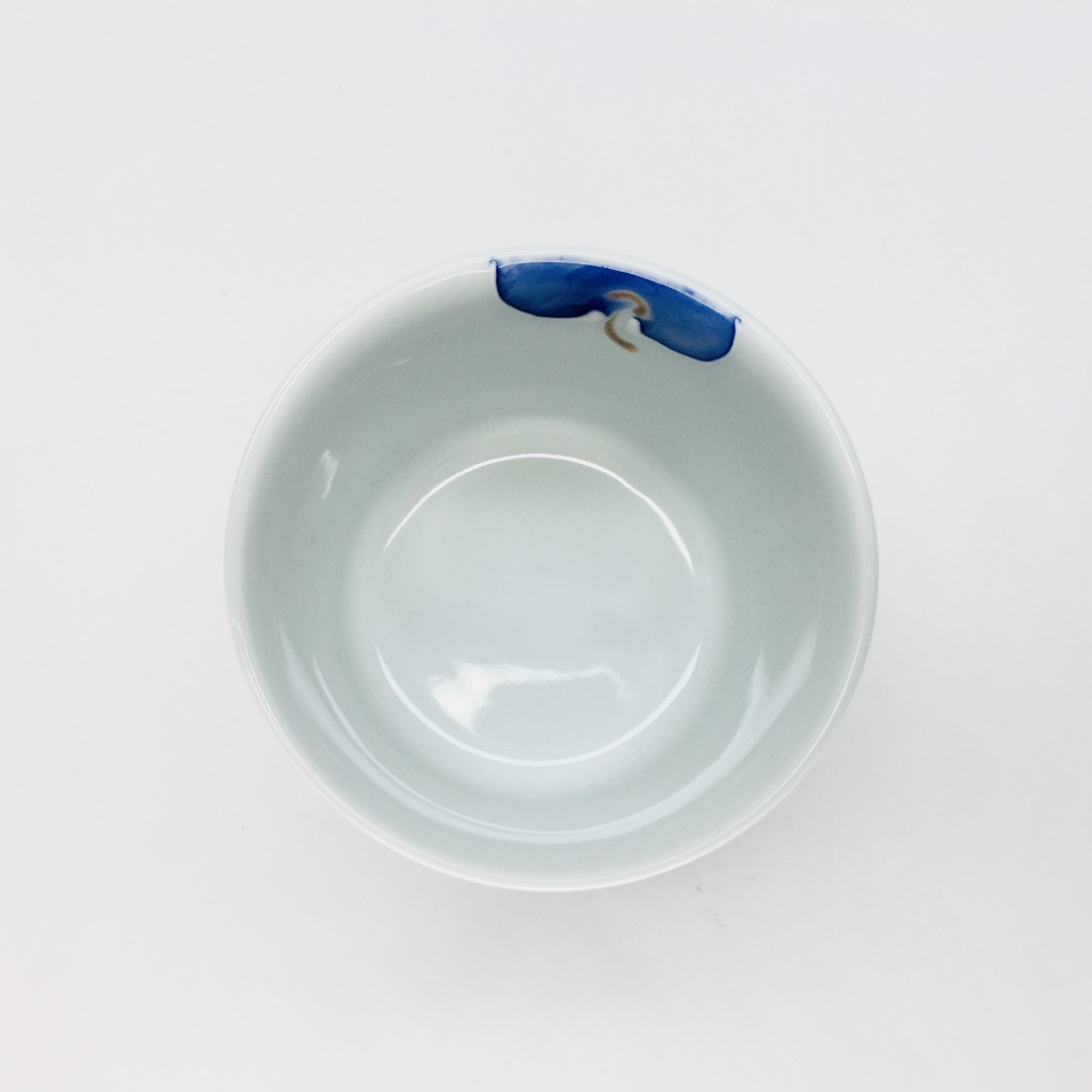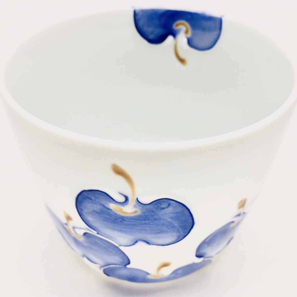 一珍(いっちん)と言う装飾技法があります。技法名の由来は諸説ありますが、描く際に「盛り上げの線」で仕上げる伝統的技法です。今回はそんな一珍の技法で可愛らしいりんごが描かれた小鉢(そば猪口)のご紹介です。