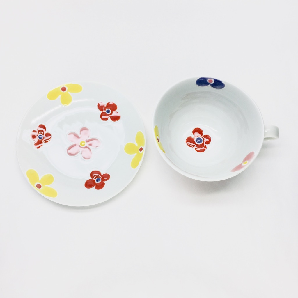 彩花プレート・ミニ茶付・カップ3点セット(赤)